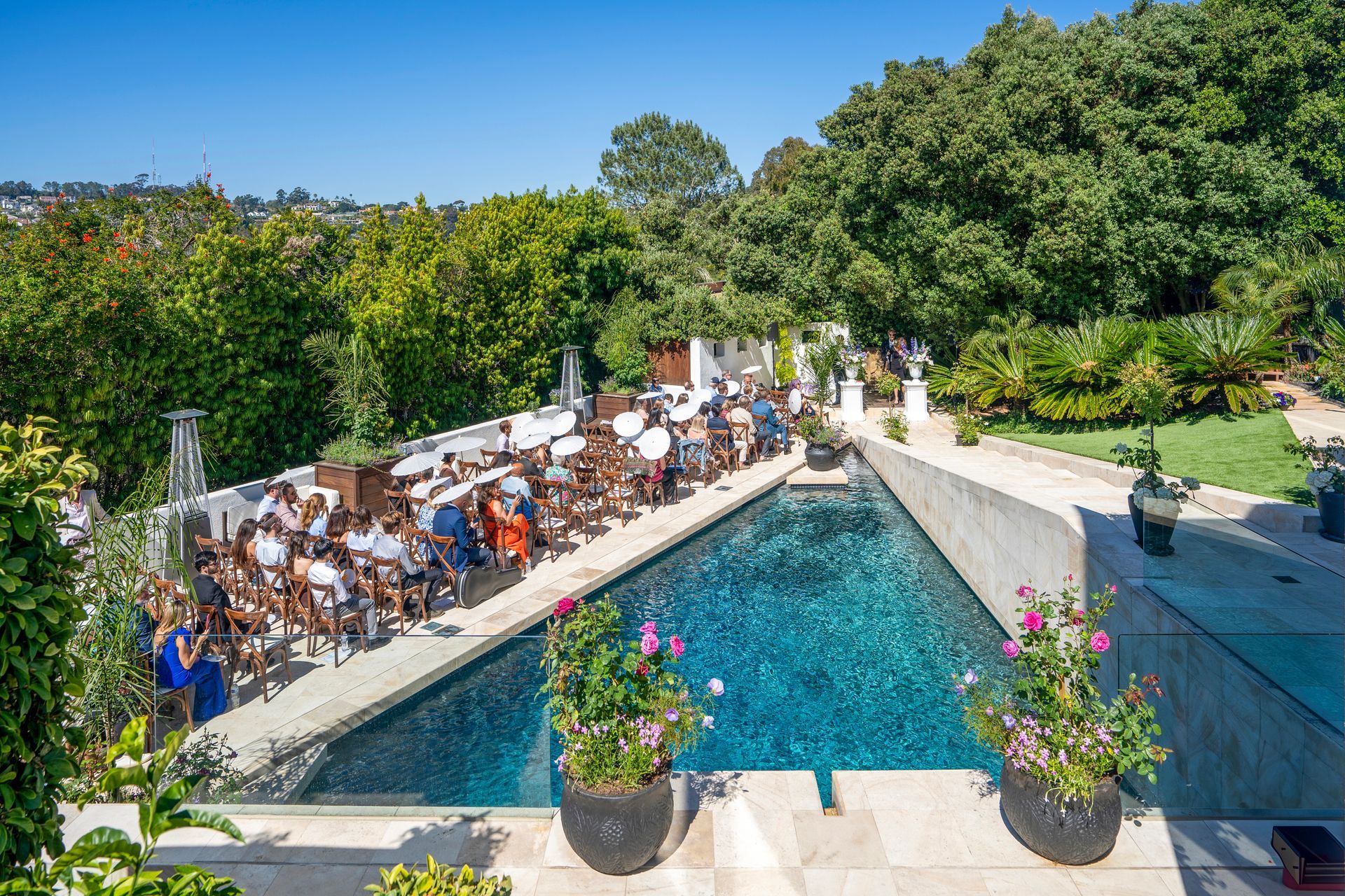 Keeping with the casual yet elegant theme, the decorations were simple and stylish. Pastel-colored flowers adorned the garden, complementing the natural beauty of La Jolla’s coastal scenery. The setup was cozy and inviting, making everyone feel right at home.