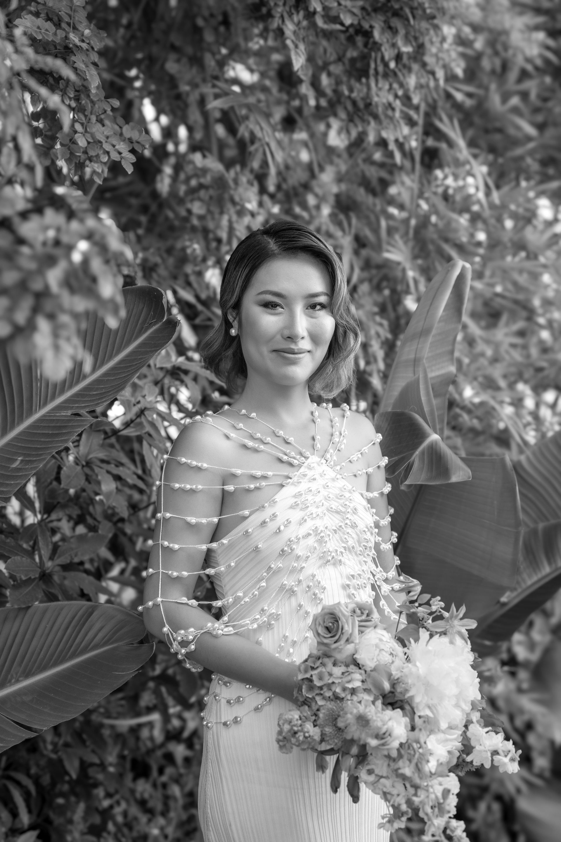 The wedding took place in the breathtaking gardens of the groom’s family home. Nestled by the ocean, this charming location served as the perfect backdrop for an intimate ceremony. The sun was shining bright, casting a warm glow over the entire event.