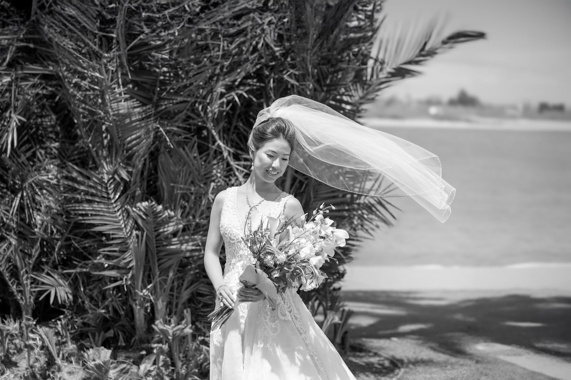 Each shot was a testament to their love and joy, from the bride’s radiant smile to the groom’s affectionate glances. The natural light added a magical touch, illuminating the couple and making every photo burst with life. The serene bay’s backdrop enhanced the moment’s beauty, making the images not just pictures but memories frozen in time.